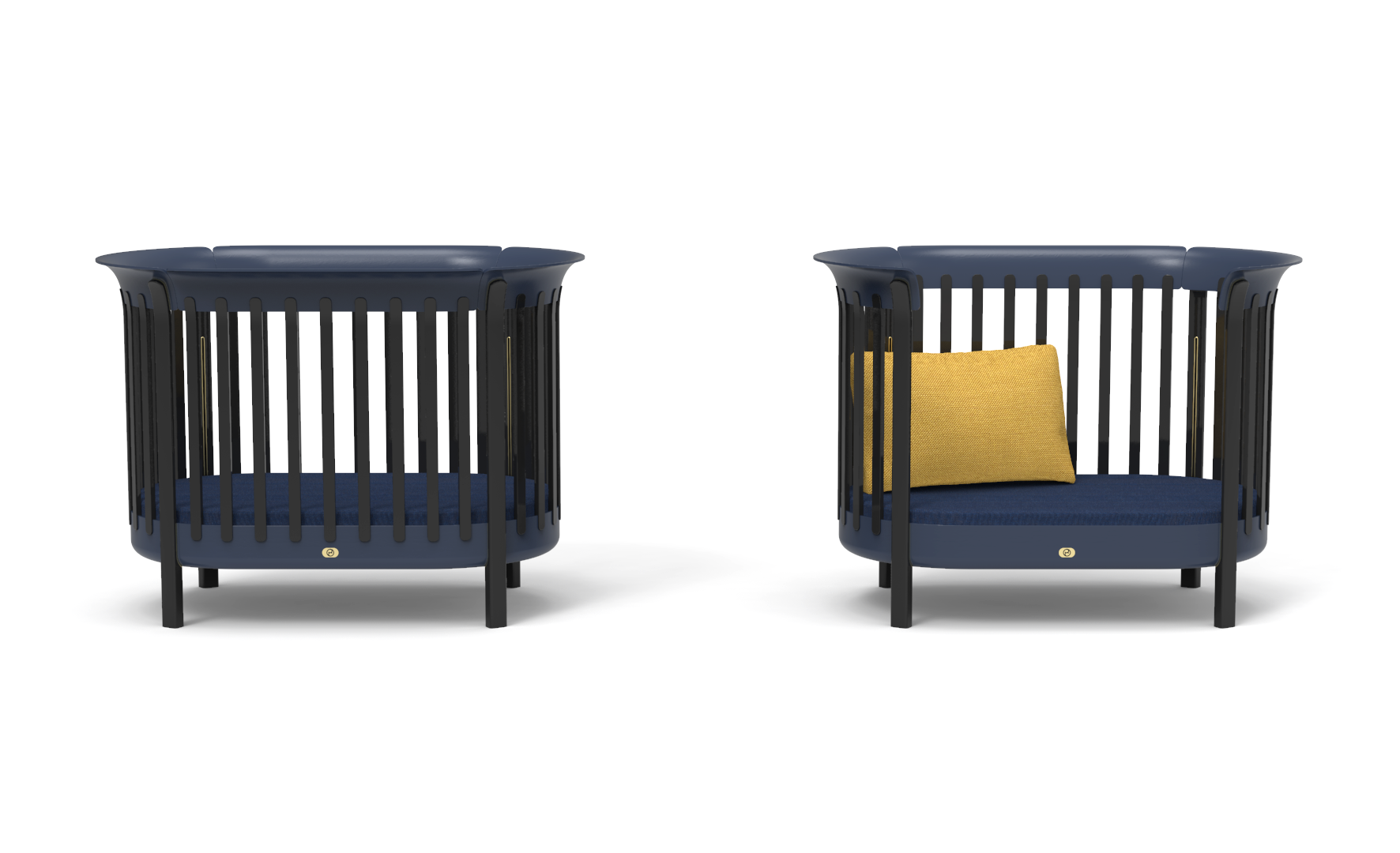 The fundamental idea was to create an ideal baby crib that could be transformed over time, depending on the child‘s needs and growth. The bed features a height-adjustable mattress and removable grids at the front and back to allow multiple configuration modes. No matter if you want to use it as a co-sleeper, solitary sleeping station, confined or open playground, the versatile design enables all scenarios.
