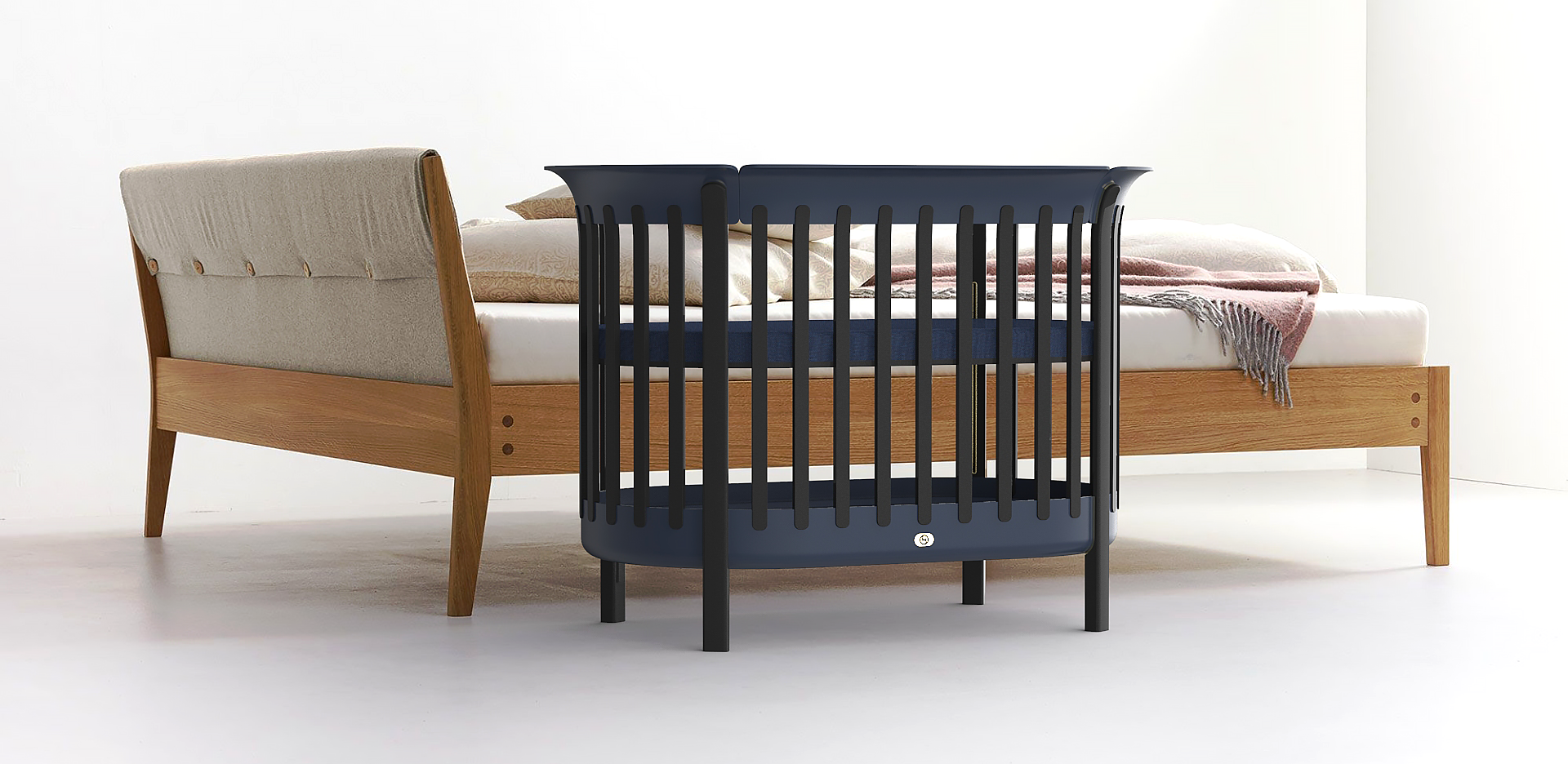 The fundamental idea was to create an ideal baby crib that could be transformed over time, depending on the child‘s needs and growth. The bed features a height-adjustable mattress and removable grids at the front and back to allow multiple configuration modes. No matter if you want to use it as a co-sleeper, solitary sleeping station, confined or open playground, the versatile design enables all scenarios.